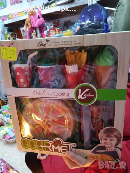 продавам детски комплект тип McDonald's в него има всички продукти на McDonald's и е направено като играчка за малки деца
