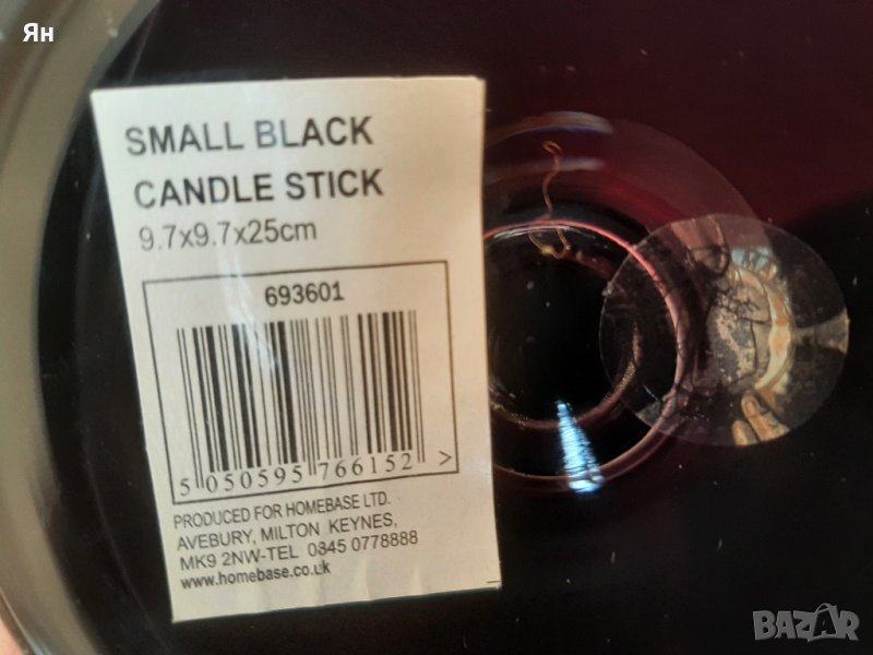 Английски Свещник от черно стъкло-25см