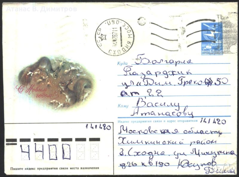 Пътувал плик Нова Година Катерички 1986 от СССР.