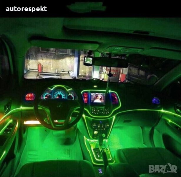 LED ЛЕД Диодна интериорна светеща лента за табло зелена светлина 12V 2м амбиентно осветление