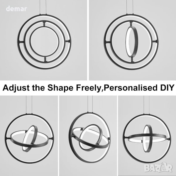 Висящият полилей е изработен от висококачествени материали, включително желязо, алуминий и силикон, осигуряващи отлично разсейване на топлината, устойчивост на износване и устойчивост на корозия за дълъг експлоатационен живот. Той разполага с вграден LED източник на светлина с 360° светлинен диапазон и силно цветопредаване, елиминиращ трептенето и осигуряващ ярка учебна атмосфера за намаляване на умората. Полилеят предлага гъвкавостта на свободния дизайн „направи си сам“ с трите си затворени кръгови форми, които могат да се въртят, за да създават различни модерни форми на LED висящи светлини, насърчавайки креативността и семейната хармония. Освен това височината на полилея може да се регулира, което го прави подходящ за различни пространства, от дневни до хотелски фоайета, и го прави идеален подарък за декорация на дома с безкрайни възможности за персонализиране.