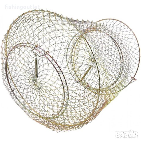 Mетален живарник за риболов, сгъваем. Изплетен от висококачествена тел.Много здрав и сигурен, живарникът е с дръжка за носене и за закрепване на стойка.Отварящи се капак и дъно, които повишават удобството при риболов.Подходящ е при трудни условия за риболов - ветровито време, каменисто дъно, течения и др. Предлага се в различни размери, като посочените стойности се отнасят за диаметър (в най-широката част на живарника) x височина в сантиметри.