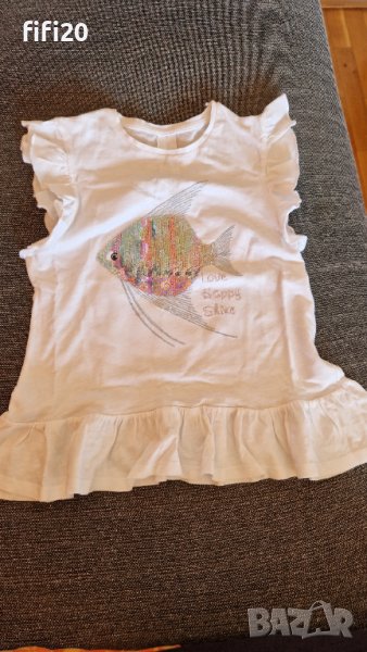 Детски комплект - бяла блузка с пайети C&A и 3/4 син панталон Okaidi 134-140 размер. В отлично състояние, без забележки.