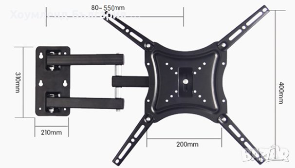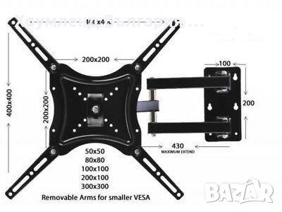 Стойка за телевизор - поставка за стена с чупещо рамо.Подходяща за плоски телевизори от 14 до 55 инча. Благодарение на чупещото рамо, вече няма да се налага да се извъртате в неудобни за да може да видите любимите си предавания. Подходяща е за всяка стая във вашия дом.