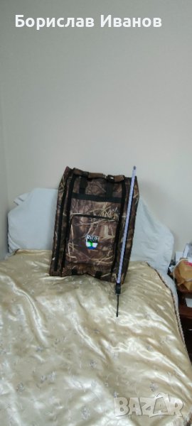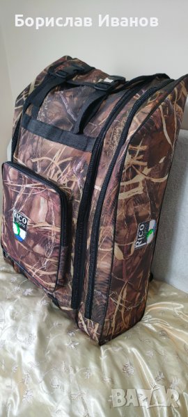 Рибарска раница с размери 70 -височина 46-ширина и 28 дълбочина.С две странични големи прегради и отпред също.Исключително много багаж събира,удобна за всички рибарски такъми...Цената е промоционална...