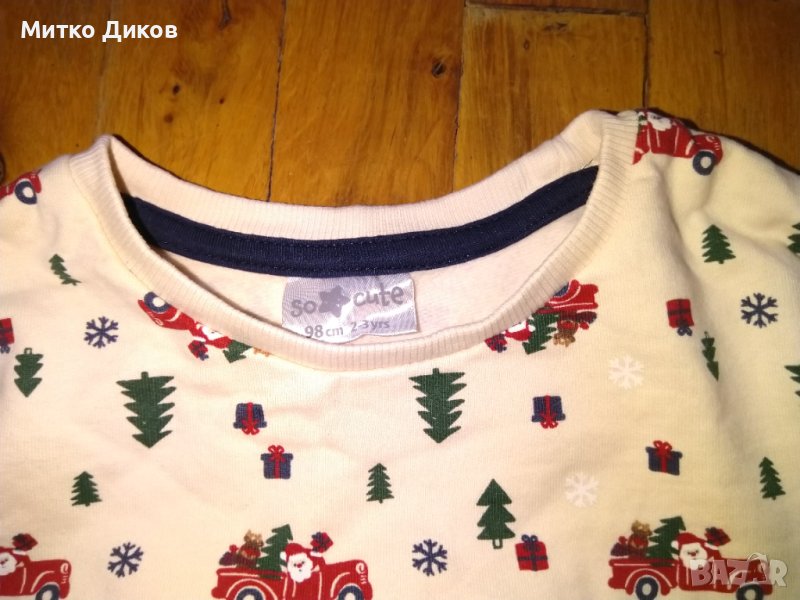 Детска блуза дълъг ръкав 98см 2-3г отлична Дядо Мраз-отгоре додолу-38 и подмишници-32см-изпращам по еконт-по спиди