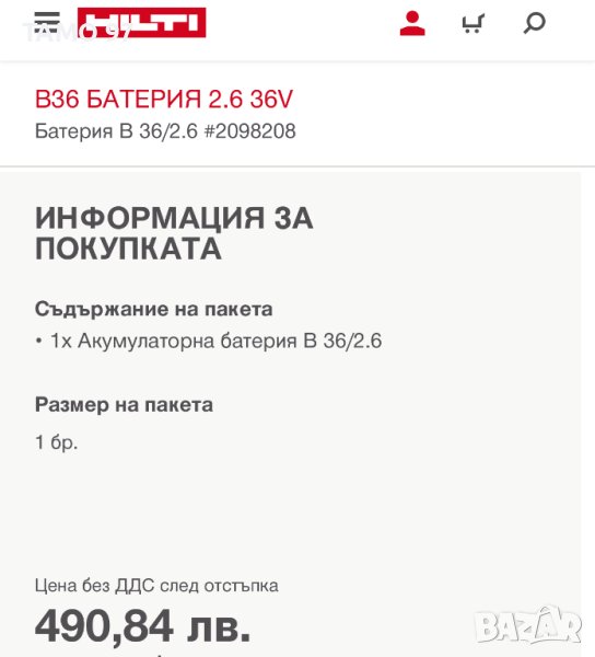Продавамакумулаторна батерияна Хилти 36V 2.6Ah с индикатор, батерията има козметични следи от използването, но се зарежда до край без проблем също така работи и държи ток отлично, внос от Франция. Пращаме с преглед и тест с куриерска фирма еконт може и лично предаване за гр. Шумен.