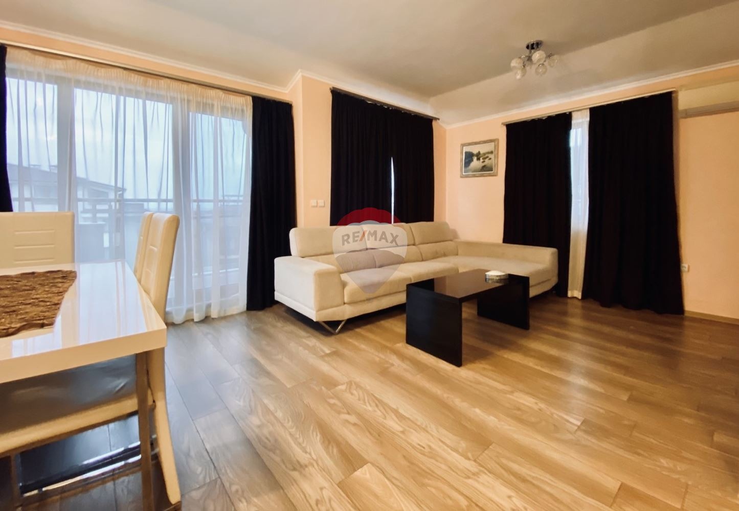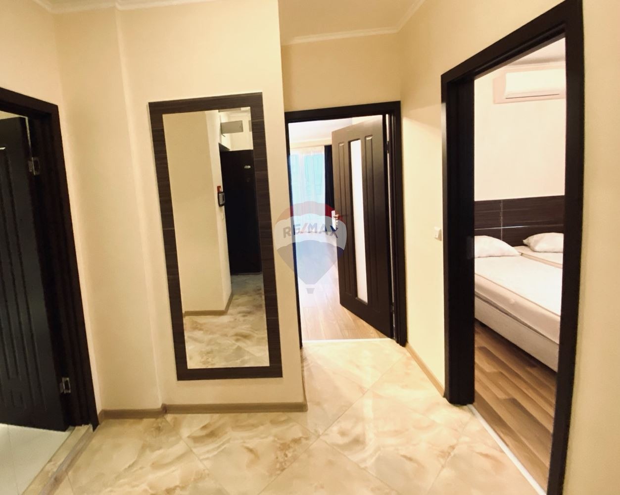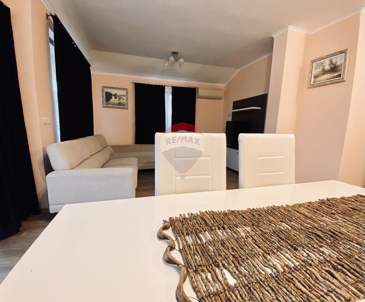 Апартаментът е разположен самостоятелно на последен етаж в шестетажна сграда с асансьор и контролиран достъп. Предлага се луксозно завършен с обзавеждането и техниката, която се вижда на снимките. Всяка стая разполага с отделен климатик. От всекидневната има излаз към открита тераса с гледка към морето /13,7 кв.м/. Две отделни спални, достатъчно просторни и стилно обзаведени. И в двете спални леглата са функционални и могат да се отделят при нужда едно от друго.