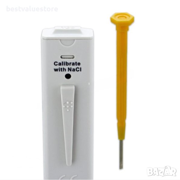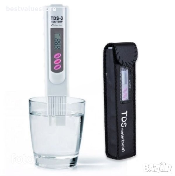 TDS метър за проверка на качеството на нефилтрирана и пречистена с осмотичната мембрана вода. Лесен за използване. Може да се калибрира с разтвори с известна соленост. Полезен при оценка на качеството на водата след системи за обратна осмоза. Позволява да се определи правилната работа на осмотичната мембрана. Функцията "Hold" позволява отчитане на резултата след изваждане на уреда от тестваната вода.
