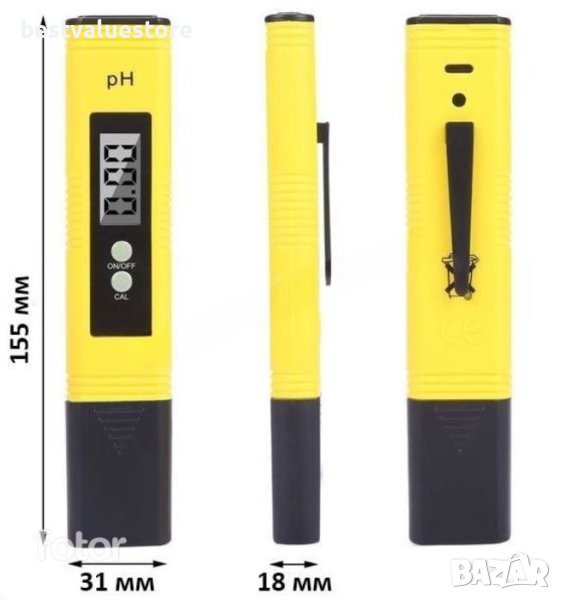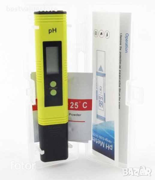 pH метър с диапазон от 0 до 14 и точност 0,1. Това не е уред за професионална употреба.