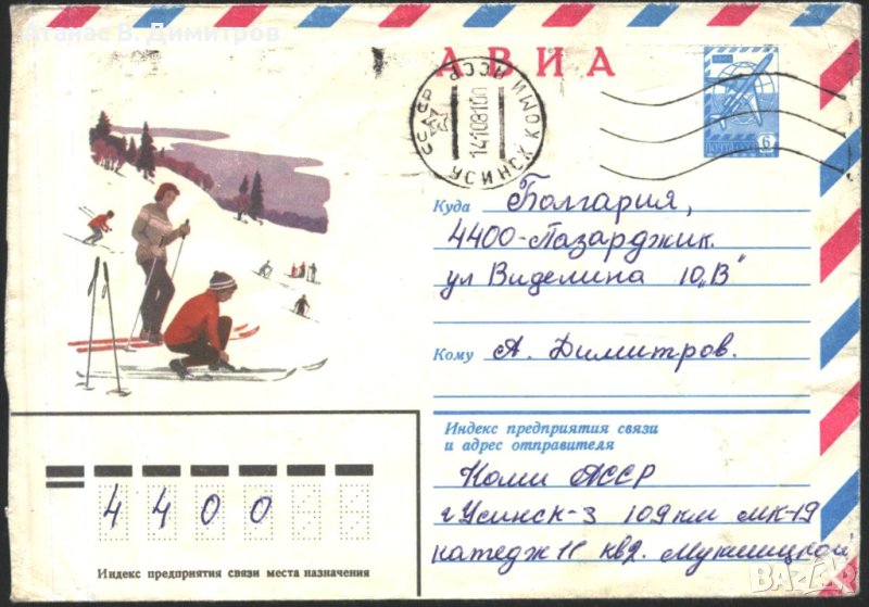 Пътувал плик Изглед Зима Планина Скиори 1980 от СССР.