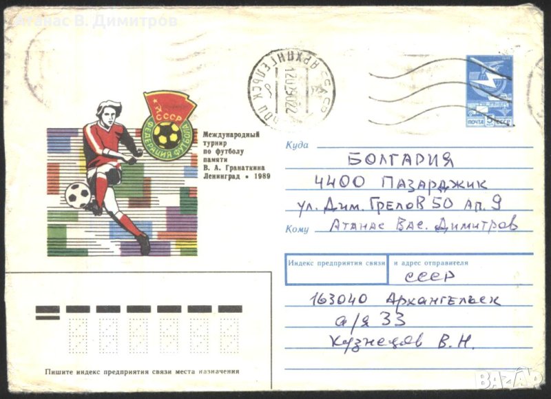 Пътувал плик Спорт Футбол 1989 от СССР.