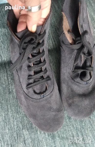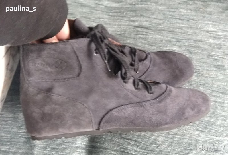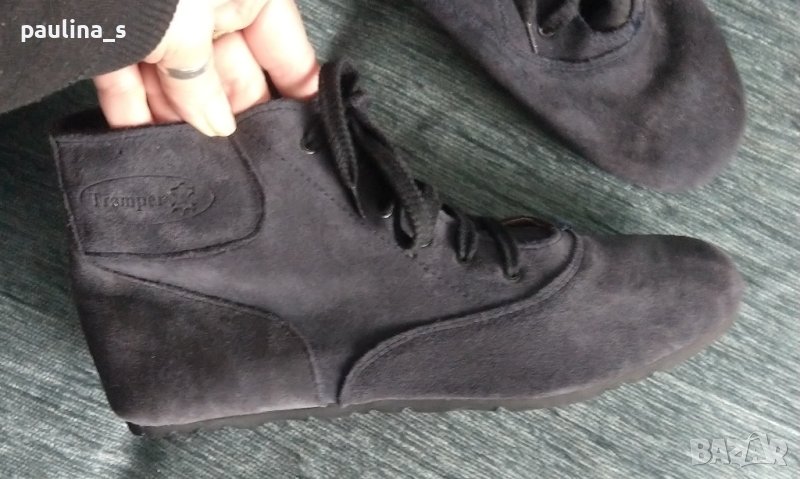 Поради новите правила за заплащане на обновяванията на обявите, моля разгледайте и последните страници на профила ми, обявите са активни и евтини. 1. Колаж / "Tramper" 39/40 - Дамски боти от естествен велур, нови. Велурът е капризна кожа, поддържа се с шпрей и четка за велур (или за зъби). Ботите се моделират по крака и са удобни като чорапи, такова е усещането. За снимките едната е напълнена с хартия, за да се види добре модела. Информацията за марката, специализирана за велурени обувки е от нета.