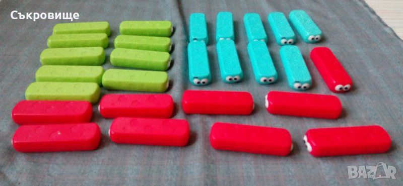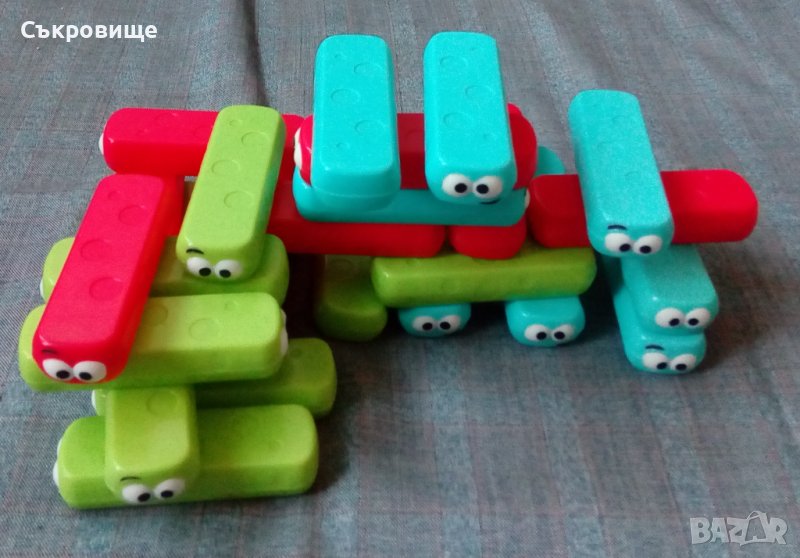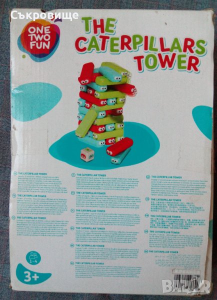 Пълният комплект без зарчето, но може да се играе и без него или с друго зарче с цифрите. Целта е да се построи кула като всеки път се издърпва гъсеничка от даден цвят (определен със зарчето или по друг начин), губи, който срути кулата.