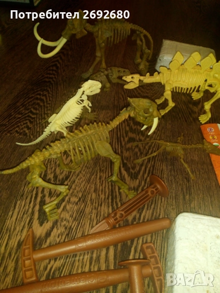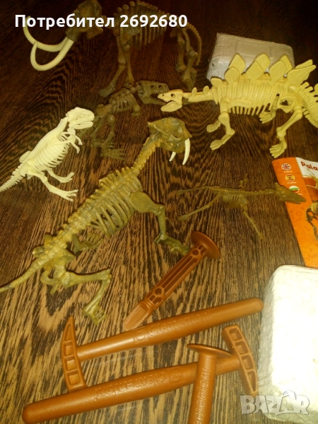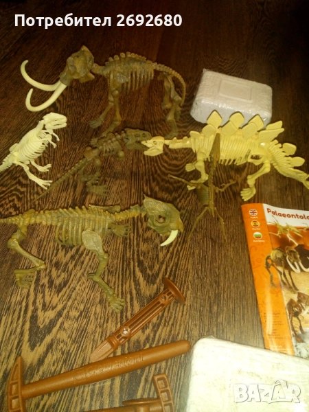 Играта "Палеонтолози" съдържа скелети на различни видове динозаври 8 броя общо с два глинени блока, които вътре имат скелети(фосили), които трябва да се изровят. Единият динозавър даже не е от тази игра, беше закупен отделно за 20лв., но и него ще го подаря заедно с всички останали, които са от тази игра.
