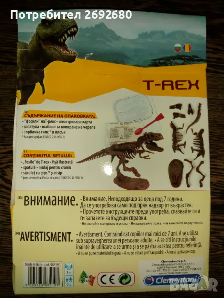 Другата игра е нова, изобщо не е разпечатана, става за подарък. Съдържа"фосили" на Т-рекс, илюстрирана карта, шпатула, торбичка с гипс, пясък и шаблон за копиране на черепа на Т-рекс. Цена - 15лв.