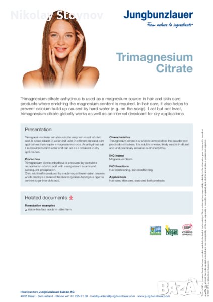 Имам удоволствието да Ви предложа натурален магнезий като МАГНЕЗИЕВ ЦИТРАТ - хранителен клас с изключително висока чистота и качество, произведен от Jungbunzlaue!