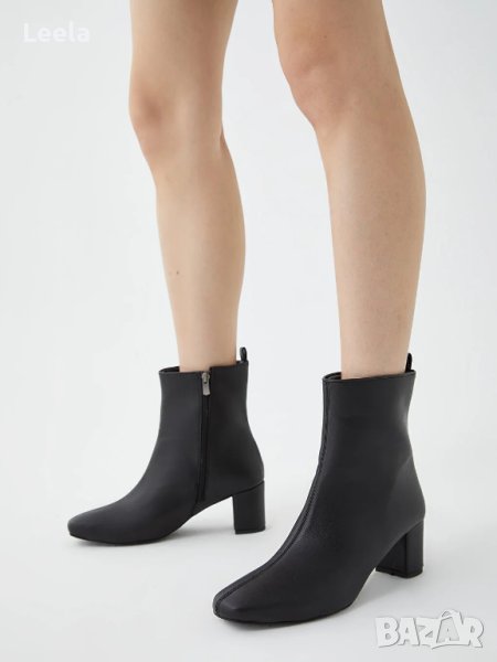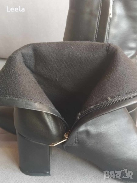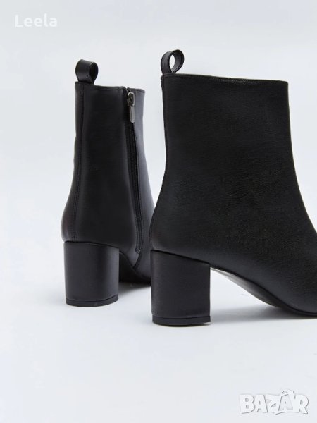 Дамски черни боти LCW Steps от еко кожа със средновисок ток, полуквадратен нос и поларена подплата.