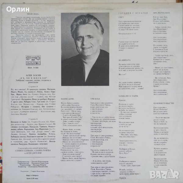 Грамофонна плоча - ВАА 11169 - Ех, че е весело - Асен Босев, снимка 1 - Грамофонни плочи - 43791222 Грамофонна плоча - ВАА 11169 - Ех, че е весело - Асен Босев, снимка 2 - Грамофонни плочи - 43791222 1/2