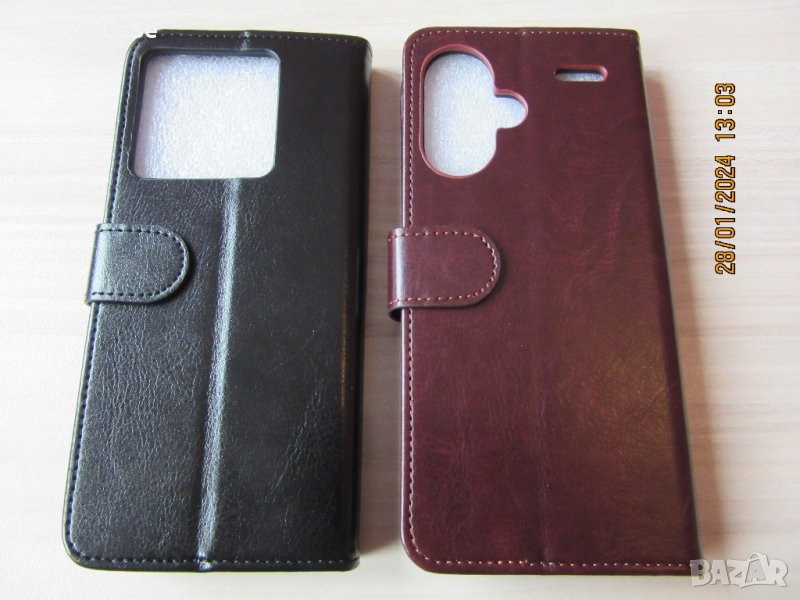 Последните четири снимки са реални. На снимки 6 и 7 отляво е черен калъф за Redmi Note 13 Pro 5G, отдясно е кафяв калъф за Redmi Note 13 Pro Plus 5G.