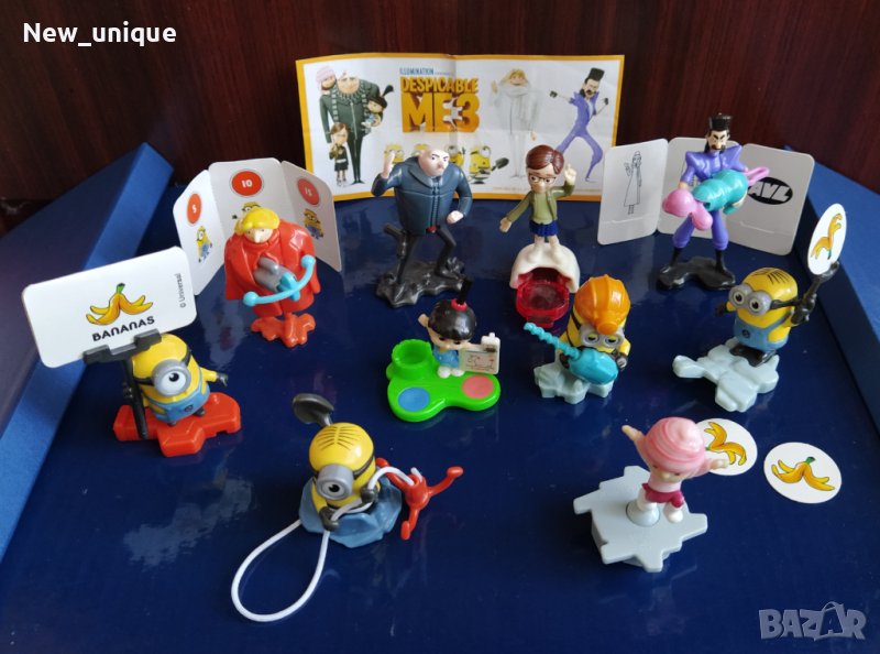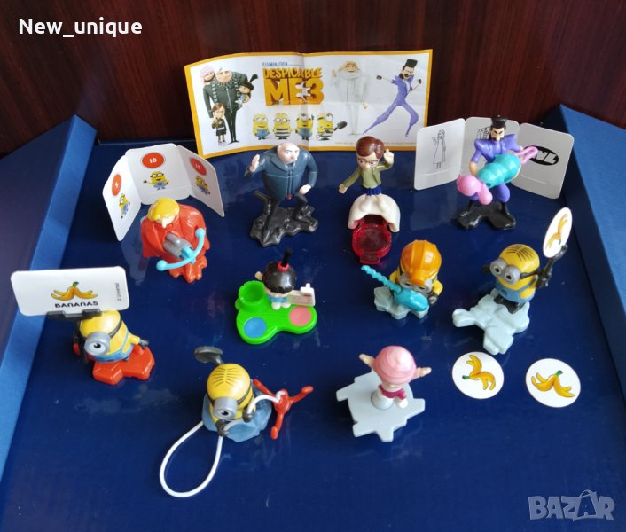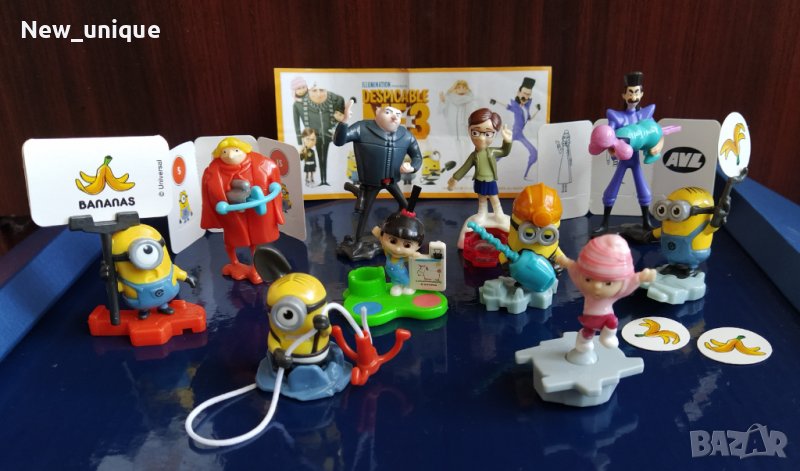 Продавам пълна колекция и фигурки от шоколадовите яйца Kinder Surprise от серията "Аз, Проклетникът 3" (Despicable Me 3) - Миньоните от 2017 г. Тя се състои от 10 добре познати персонажи (фигурки):