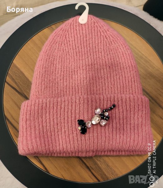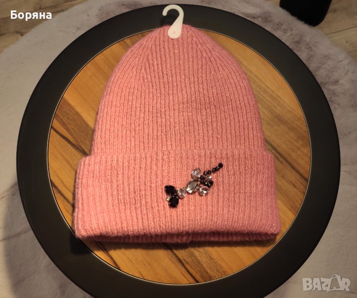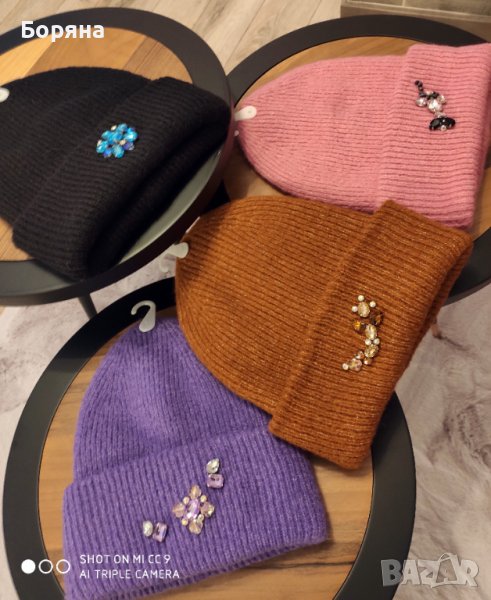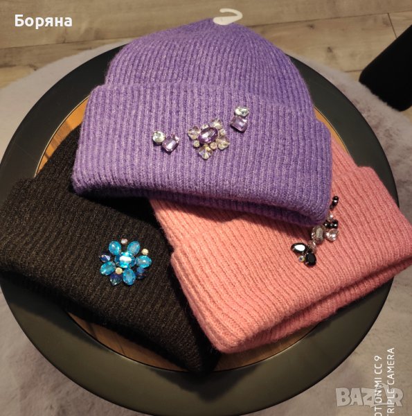 Нови страхотни зимни шапки тип beanie от мека плетка в различни цветове, декорирани с камъни.