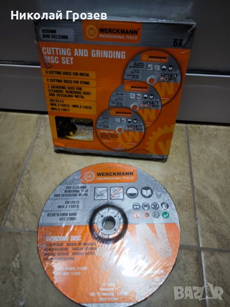 Комплект дискове за ъглошлайф-230х22.23мм.-6бр.,метал,камък-Werckmann, снимка 1 - Други инструменти - 43793719 Комплект дискове за ъглошлайф-230х22.23мм.-6бр.,метал,камък-Werckmann, снимка 2 - Други инструменти - 43793719 Комплект дискове за ъглошлайф-230х22.23мм.-6бр.,метал,камък-Werckmann, снимка 3 - Други инструменти - 43793719 1/3