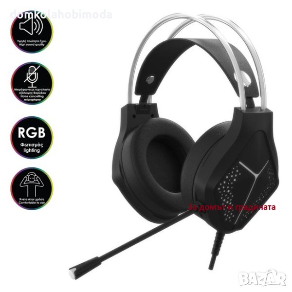 Описание - Характеристики Геймърски слушалки с кабел, RGB осветление, високо качество на звука и регулируем микрофон с технология за шумопотискане. Те са удобни за използване. Съвместим с: Windows 2000 / Windows XP / Windows Vista / Windows 7 / Windows 8 / Windows 10 / Linux / Mac OS или всяко устройство, което има USB порт с 3,5 мм аудио жак за слушалки и микрофон. Съдържа инструкции. Размери на опаковката 19,2х10,5х23см