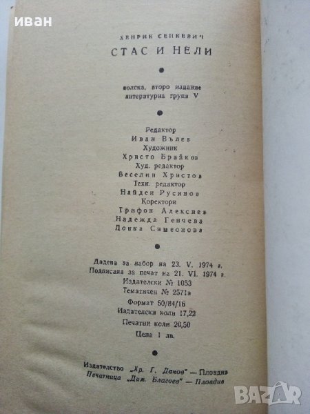 Стас и Нели - Хенрик Сенкевич - 1974г. → Обява 43800167