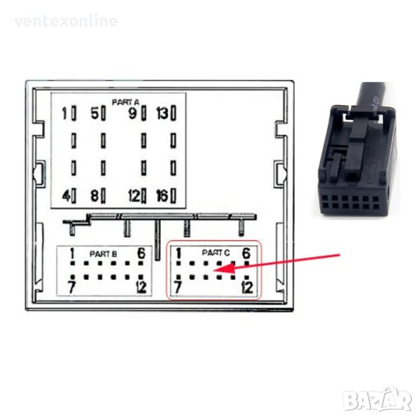 Подходящ за заводски автомобилни радиоприемници на пежо след 2004 година с 12 пинов конектор.