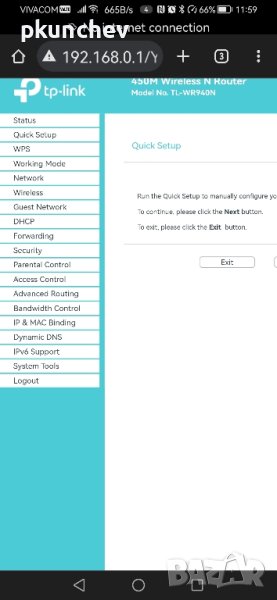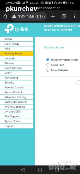 Рутерът е тестван, ресетнат, готов за настройки и употреба. Производител: TP-LINKМодел: TL-WR940NОписание:Безжичен рутерСкорост: 300 MbpsАнтена: 3 x 3dBi fixed Omni Directional AntennaИнтерфейс: 4 x 10/100 Mbps LAN Ports, 1 x 10/100 Mbps WAN PortСтандарти: IEEE 802.11n, IEEE 802.11g, IEEE 802.11bЧестотен обхват: 2,4 GHzРазмери: 200 x 140 x 28 ммСигурност: 64/128/152-bit WEP / WPA / WPA2,WPA-PSK / WPA2-PSKСертификати: CE, FCC, RoHS300Mbps безжична скорост e идеалнa за HD видео стриймингТрите антени повишават безжичният обхват и подобряват достъпа до интернетПовишена защита на безжичната връзка, както и лесно администриране чрез QSS ButtonIP базиран контрол на честотната лента позволява на администраторите да определят колко честотна лента е отделено на всеки компютър