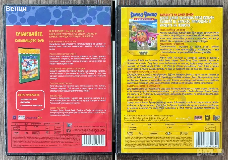 Продавам следните анимационни филми подходящи деца и не съдържат опасни сцени или други. От лична колекция - Мистериите на Джей Джей самолетчето. Загадките на Джей Джей самолетчето