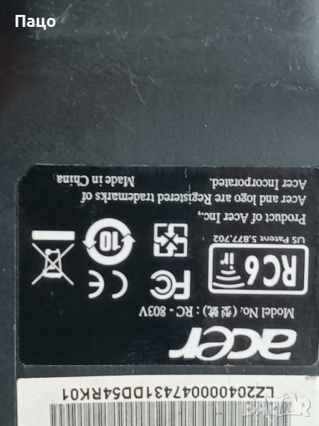 Acer Aspire Media Center Remote RC-803V → Обява 43805232