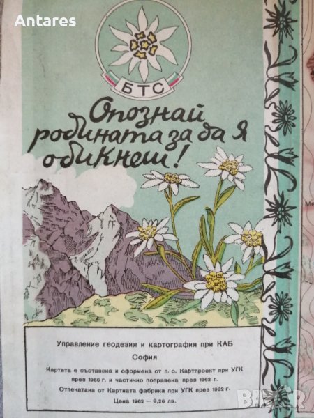 Стара туристическа карта на България от 1962г.В цялостен вид, без скъсани или липсващи страници.
