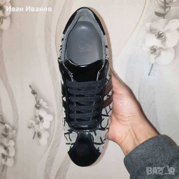 Горната част е изработена от еко кожа, украсена с Calvin Klein шарки. Подметката е равна, така че да усещате стабилност и сигурност.