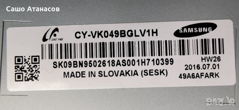 Модули от телевизор SAMSUNG UE49K6372SU със счупена матрица (панел CY-VK049BGLV1H )