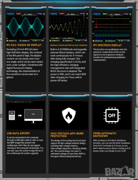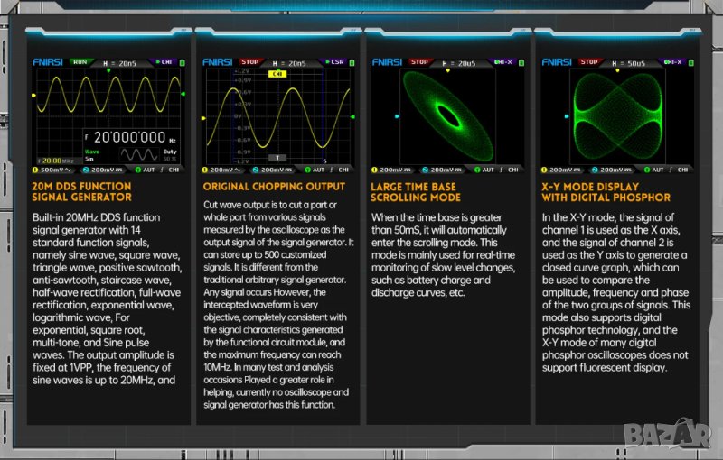 Осцилоскоп фосфорен двуканален с генератор на сигнал Fnirsi → Обява 43810630