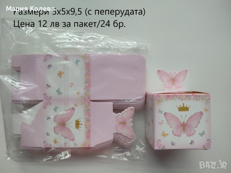 Мини кутии за подаръци. Подходящи за ралични тържества - юбилей, сватба, кръщене и други. Размери 5х5х13. Цена 0,60 лв за брой. Минимално количество за поръчка 25 бр. Към всяка кутийка има панделка.