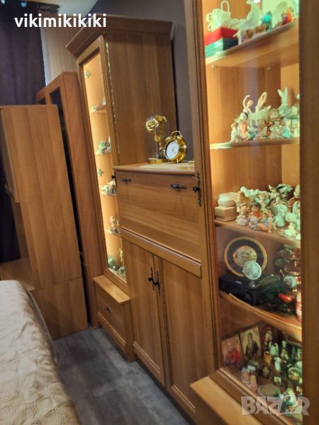 Модулна секция с нормални следи от употреба, може да бъде "подредена" по различен начин, т.к. отделните части не са свързани, цена 390 лв. Първи модул(трета снимка)височина 161 см; ширина 79,9 см; дълбочина долен шкаф(дълбоко чекмедже) 50см; дълбочина горна част 35 см. Витрини 2 бр. с осветление(различни програми) височина без перваз 190 см; височина с перваз 196 см (може да се махне, ако не допада стилово); ширина 50 см; дълбочина долен шкаф(дълбоко чекмедже) 50 см; дълбочина горна част 42 см. 3-ти модул (пета снимка) височина 120,5 см; ширина 80 см; дълбочина 36 см. Продадена