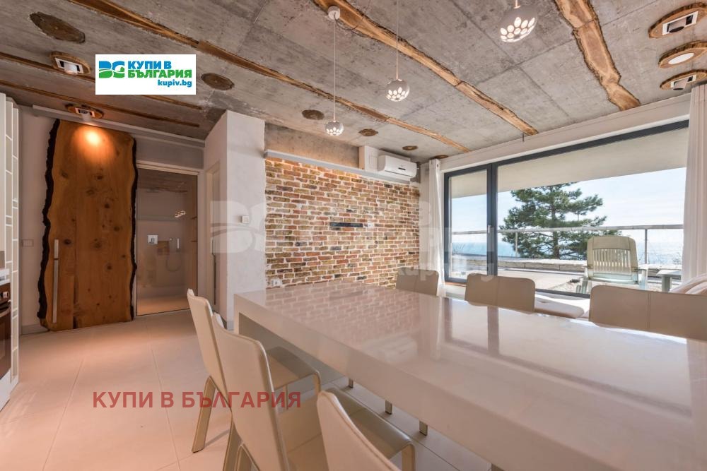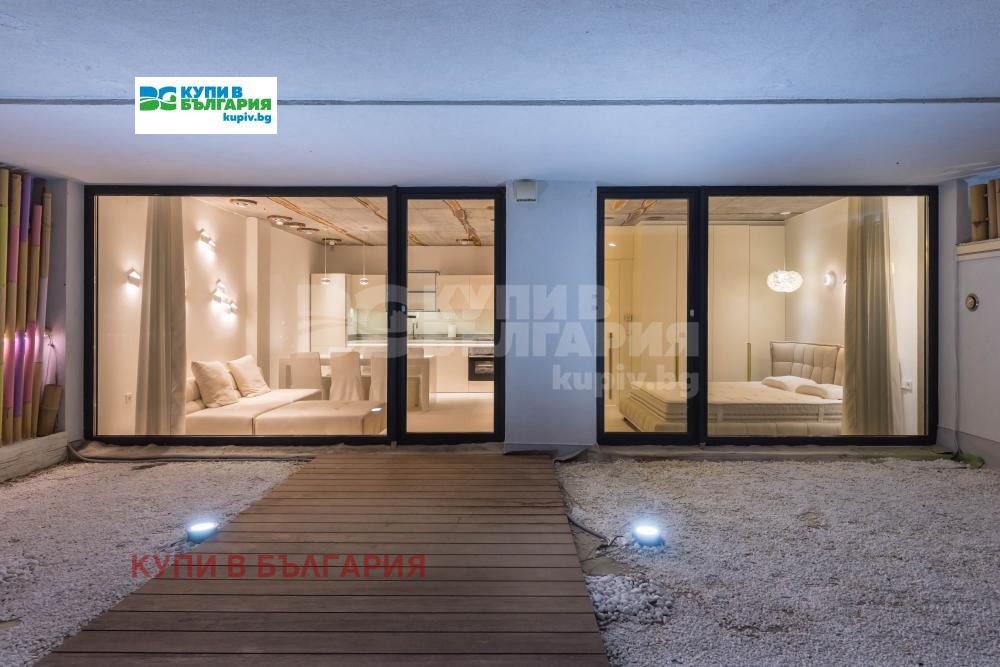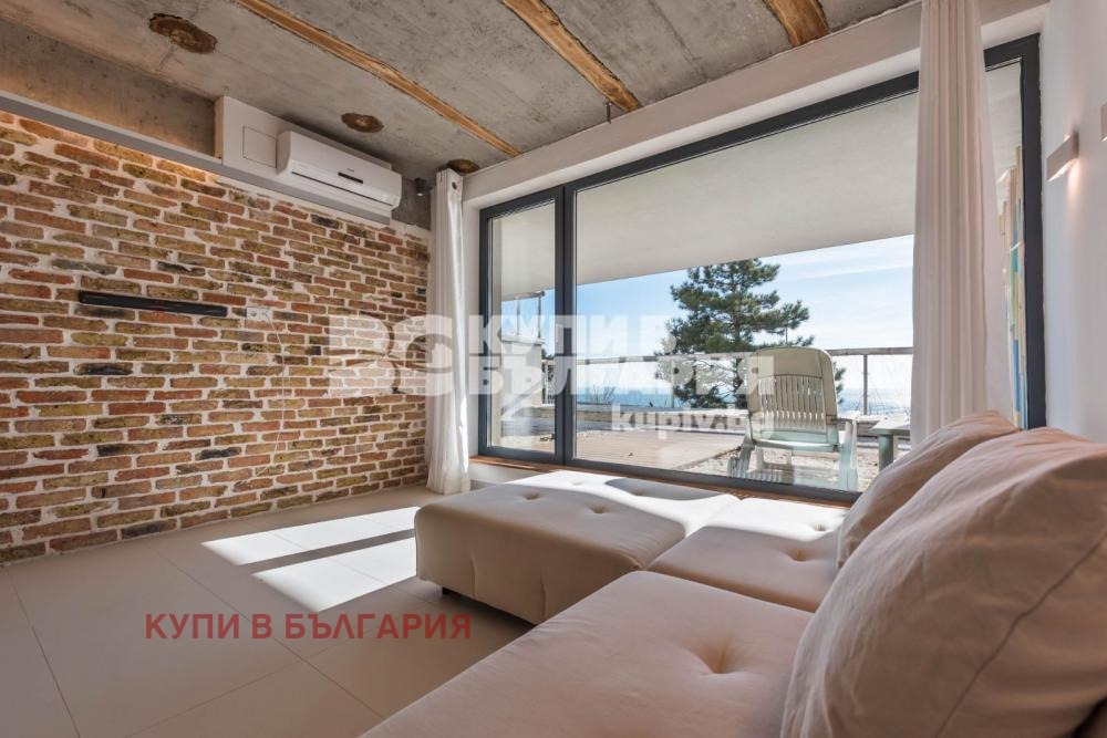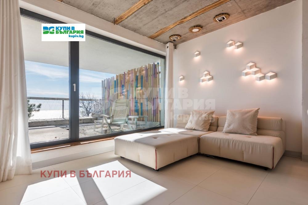 Оригиналният дизайнерски апартамент е разположен на поземлен етаж и притежава тераса с несравнима морска панорама. На квадратура от 56 кв.м. са разпределени: