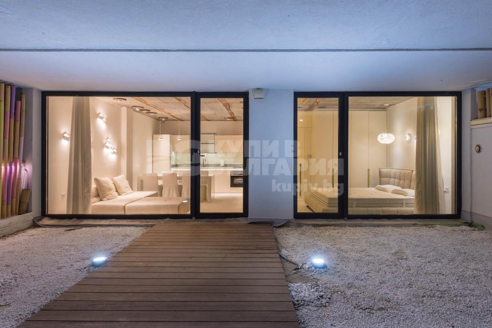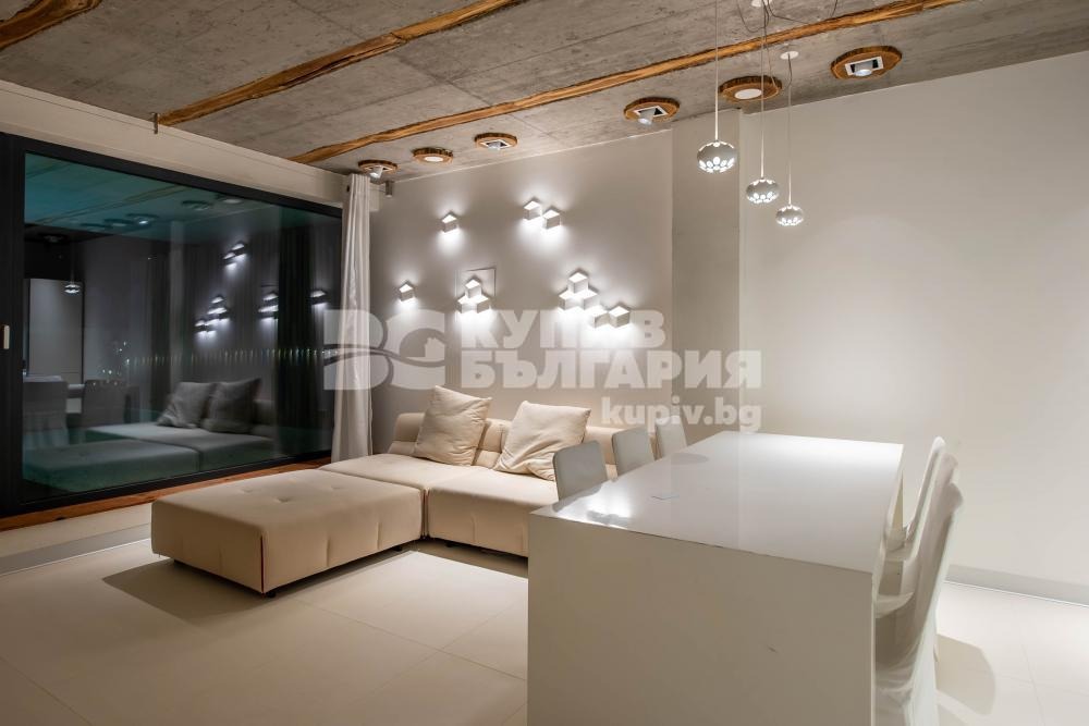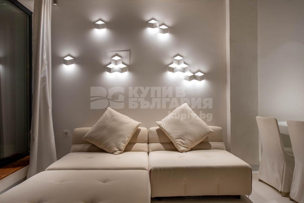 Дизайнът е уникален - Модерен и предизвикателен с посланието на автономност, релакс и морска атмосфера. В бетоновите плочи по тавана на апартамента са вградени естествени дървени орнаменти от акация. Тухлените стени и бетонът са използвани за естествена декорация, като са допълнително обработени, импрегнирани и грундирани. Луксозно обзаведен, с мебели, кухня, дивани, атрактивни плочки, осветителни тела - всички са на известни италиански марки.
