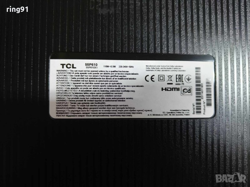 TV TCL 55P610 На части , снимка 1 - Части и Платки - 43814160 TV TCL 55P610 На части , снимка 2 - Части и Платки - 43814160 TV TCL 55P610 На части , снимка 3 - Части и Платки - 43814160 1/3