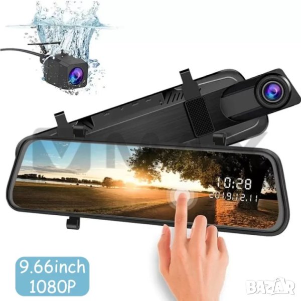 DVR 9.66 inch Видеорегистратор огледало с две FULL HD камери за кола