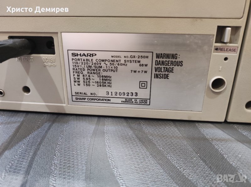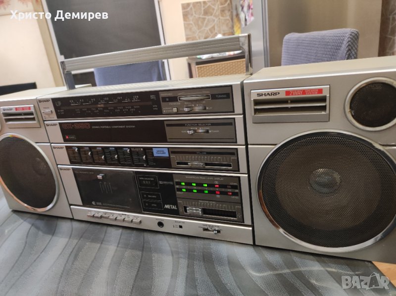Sharp Gx250. Работещо на касета.Радиото иска ремонт.външни забележка на едната тонколонка е наранена пластмасата.