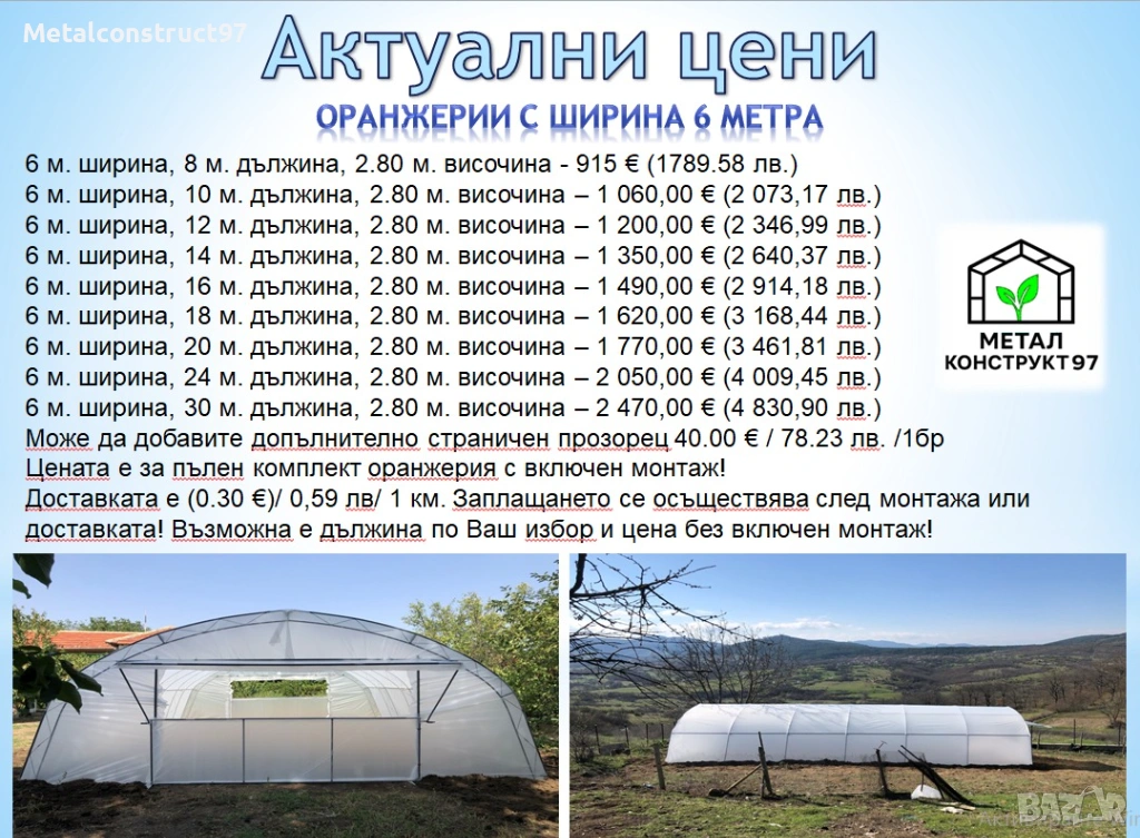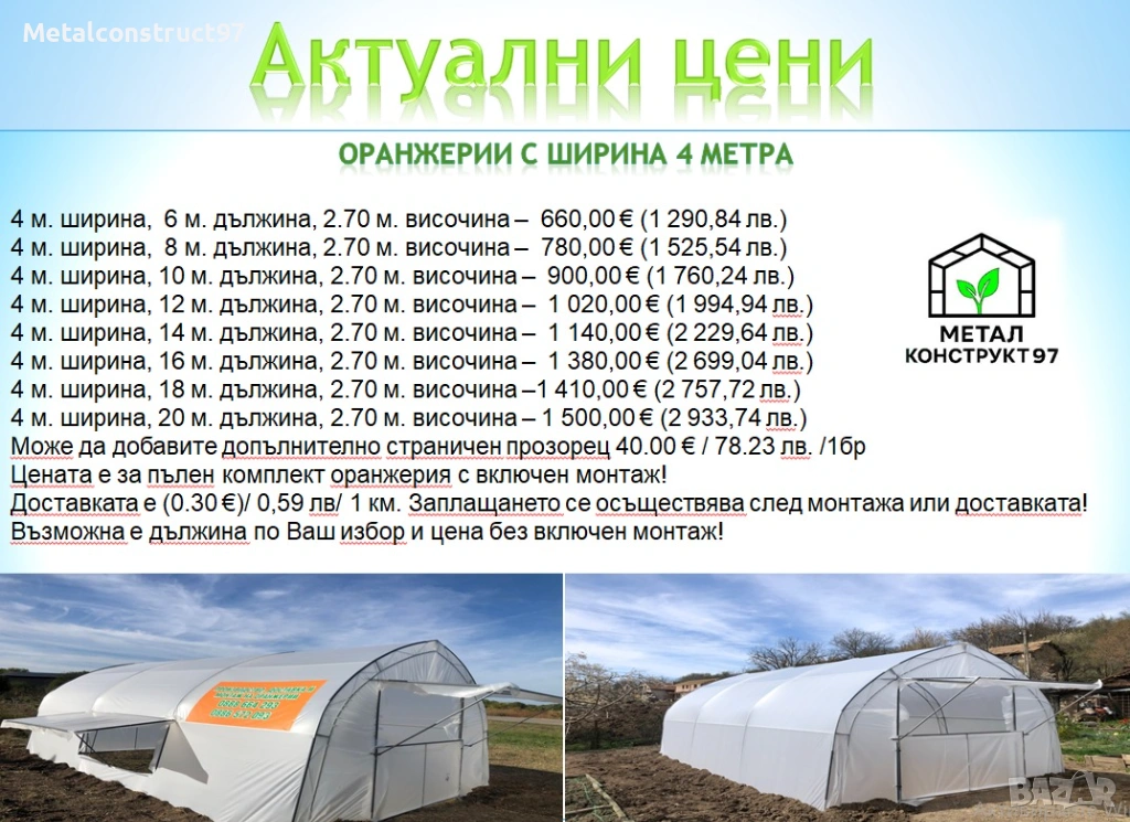 Oranjerii “ Metalconstruct97“- производство на “тунелни”оранжерии за любители и професионалисти.
