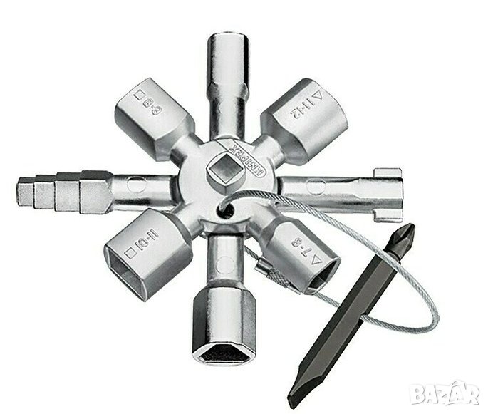 Мултифункционален ключ за отваряне на всички стандартни заключващи системи в областта на техническите съоръжения, газоснабдяване, водоснабдяване и спирателни системи. С висококачествено повърхностно покритие.