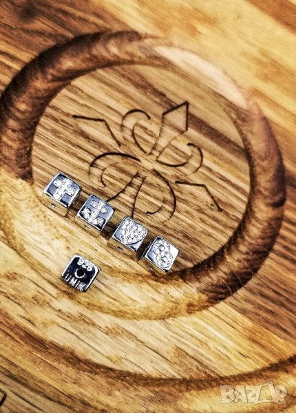 925 сребърен елемент кубче със сърце ❤️, кръст, котва и безкрайност от цирконий. Родиево покритие –размер на мънистото- 6,5мм/ 925 sterling silver