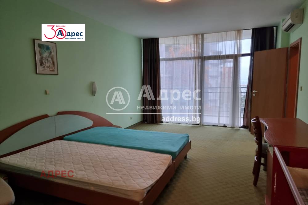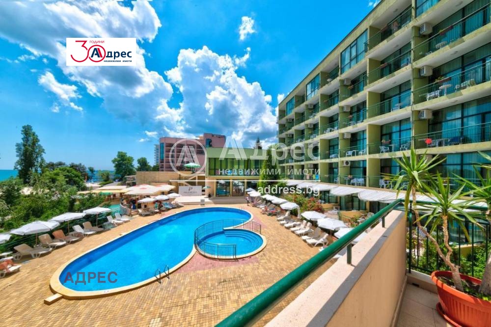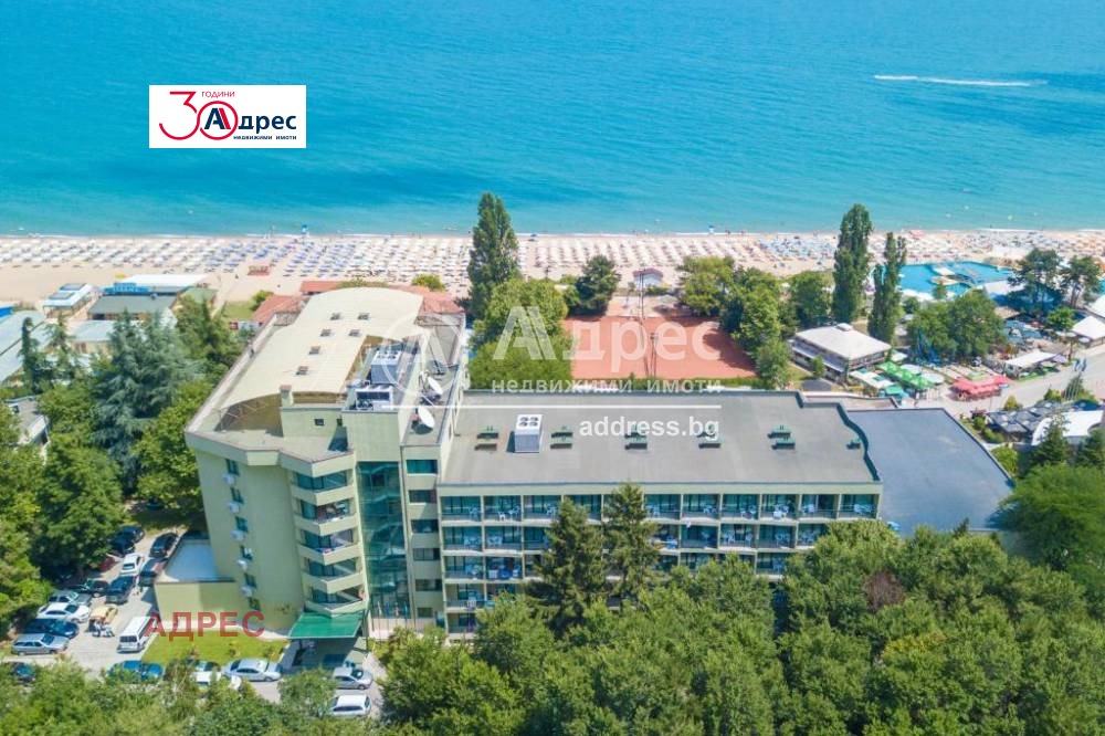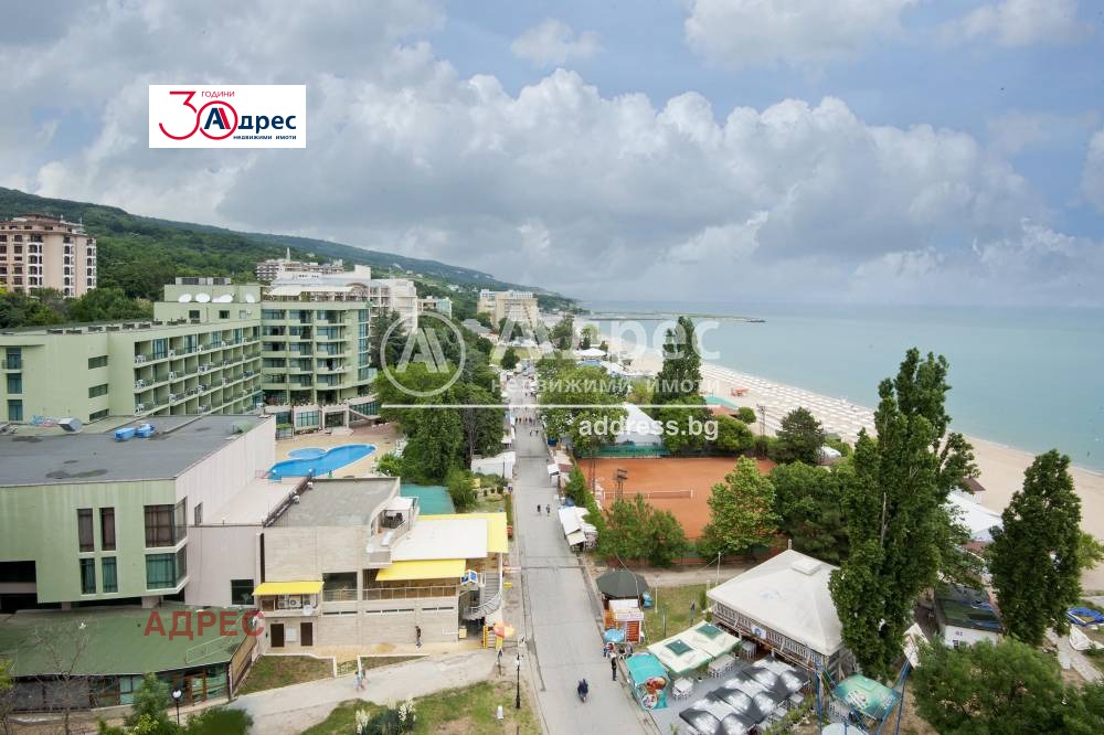 Само от Адрес! Двустаен апартамент в к.к. 'Златни пясъци', първа линия до морето. На обща жилищна площ от 99 кв.м са разпределени: голям хол с тераса, кухня/ трапезария, просторна спалня с баня/тоалетна, коридор, още една баня/тоалетна и тераса с морска панорама към спалнята. Апартаментът се намира на шести етаж. Напълно обзаведен и се отдава много добре за нощувки. Обади се сега и цитирай този код: 604626