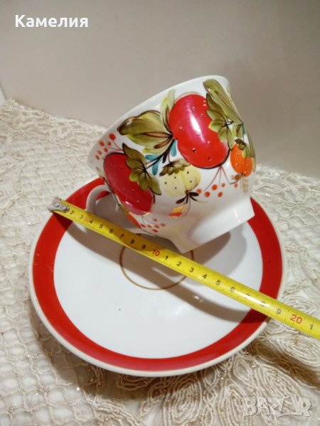 Ръчно рисувана чаша-гигант Ягоди. 500 мл. Светловодски ( СССР). Шарка е от двете страни. Чинийка в подарък. Без забележки. 55 лв.