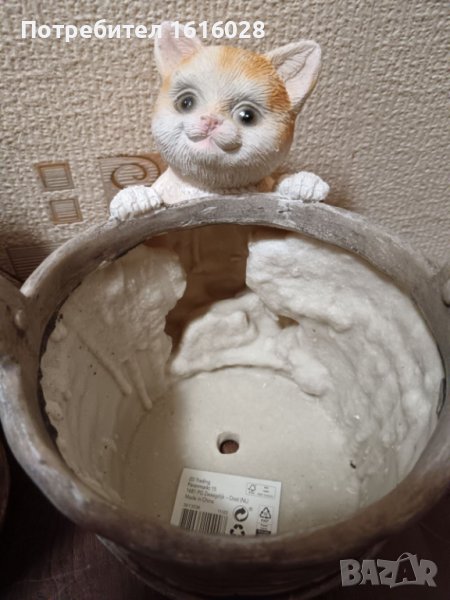 Всеки сам ще реши дали да посади цвете в тази закачлива саксия с надничащо коте в нея или да я използва като кашпа,в която да сложи саксия с насъдено цвете.